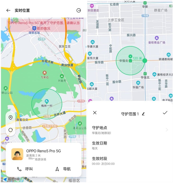 远程守护功能除了可以让你看到家人的相关信息,还提供了丰富可自定义的关怀功能。你可以为家人手动圈定一个守护范围,当家人的实时位置超出设定范围时,你就会及时收到提醒,时刻掌握家人情况。