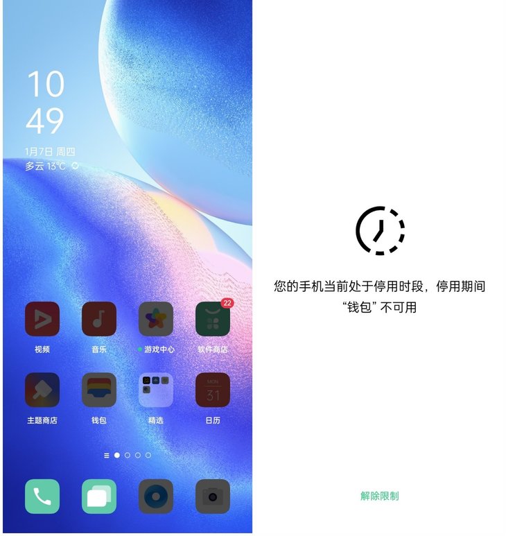 当手机进入停用状态,桌面受限制的应用会变成暗灰色,点击应用可以申请解除限制。比如孩子上课需要用到某个应用,可以申请解除限制,守护人在手机上同意即可使用,日常使用更加灵活。